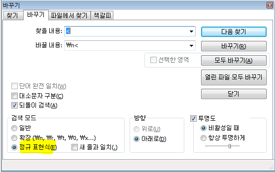 ※ 검색모드에서 꼭 정규 표현식을 선택하셔야됩니다.