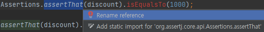 | 변경 후 | assertThat(discount).isEqualTo(1000); |