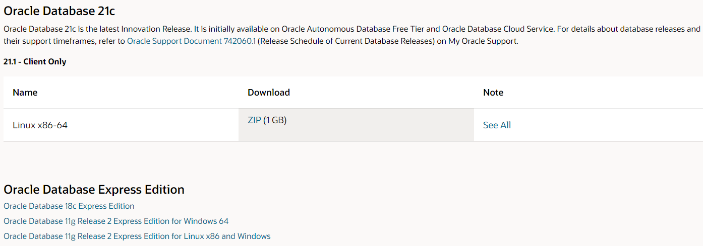 ※ 리눅스 버전의 oracle 11g 찾는 방법