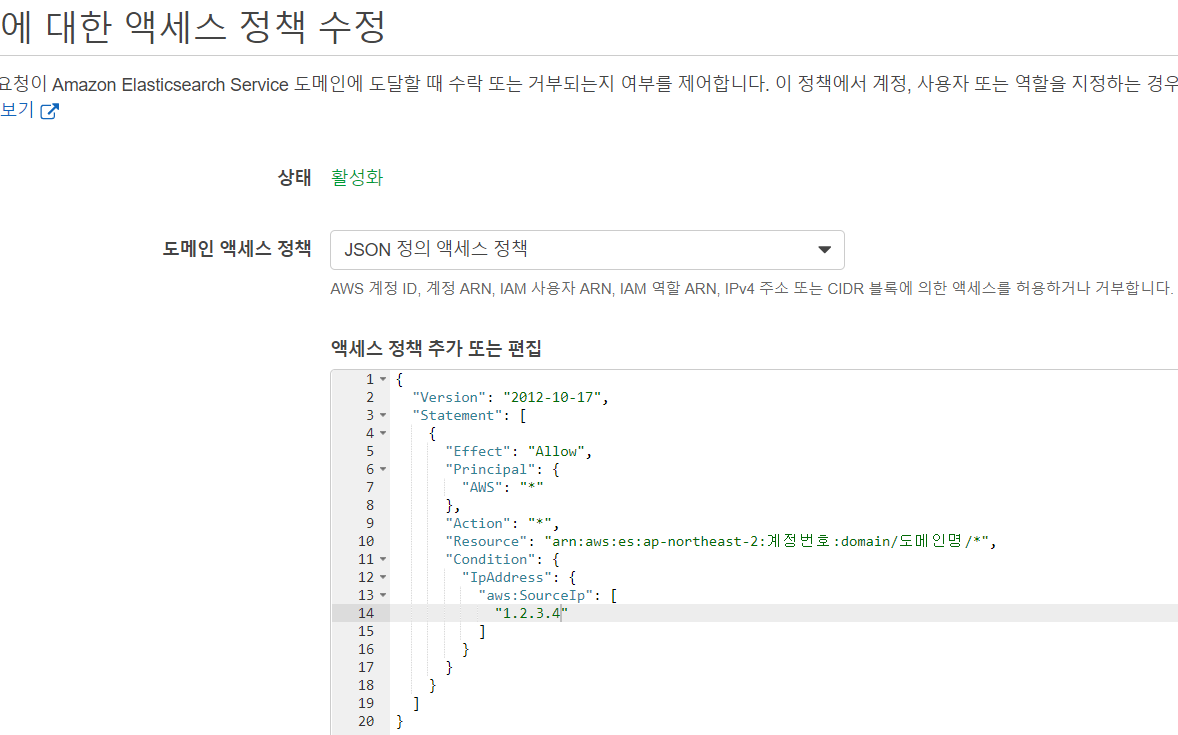 2) 아마존 엘라스틱서치의 해당 도메인에서 엑세스 정책 수정