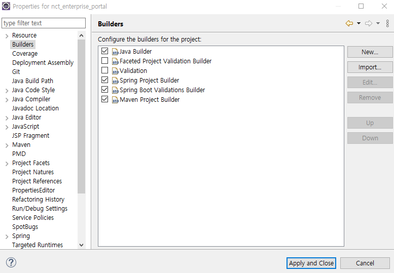 해결방법 : Facted Project Validation Builder, Validation 2개 체크 해제