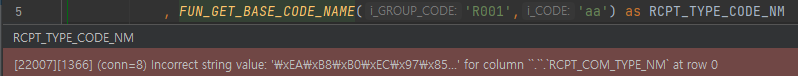 두번째 해결방법 function 내에 'character set utf8' 제거