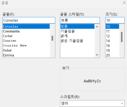 ※ Consolas는 Microsoft에서 개발한 모노스페이스 폰트로, 코드 편집기에서 사용하기에 좋습니다.