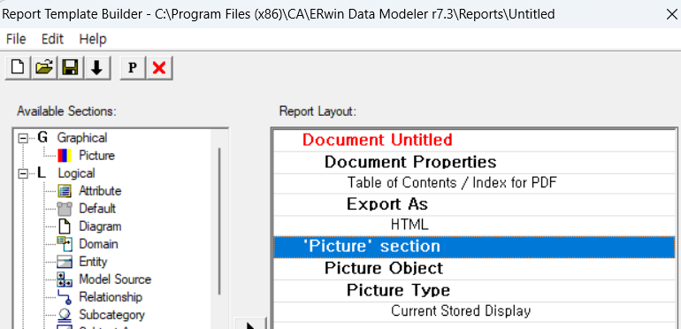 4. Graphical > Picture 더블클릭 ('Picture' section이 Report Layout에 출력됨)