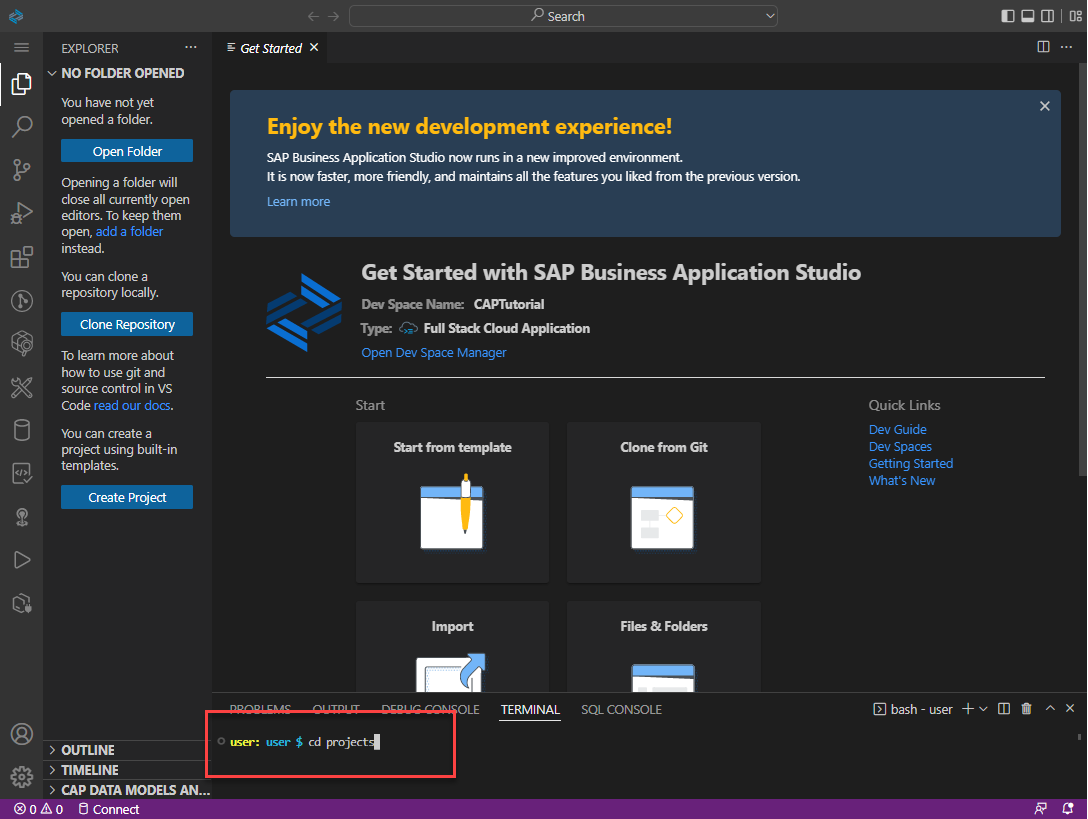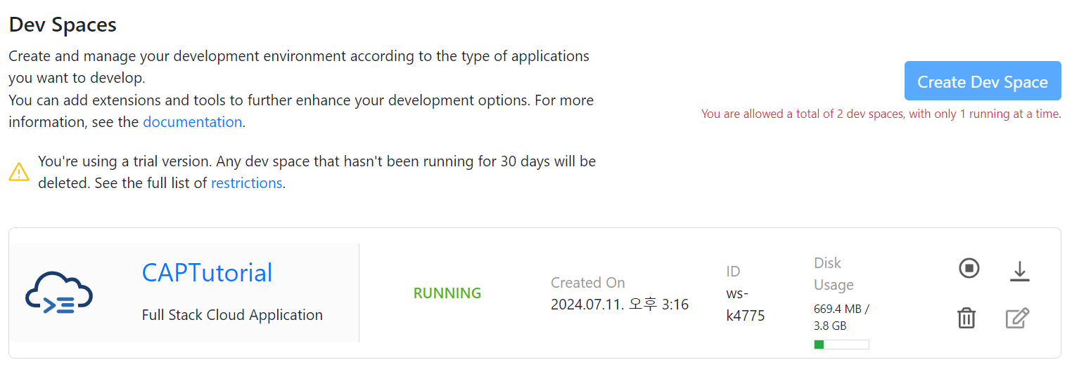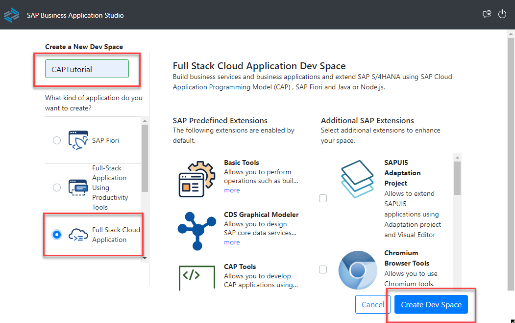 - Create a New Dev Space : CAPTutorial