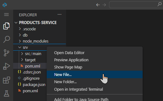 1) srv 경로에 admin-service.cds 파일을 생성합니다.